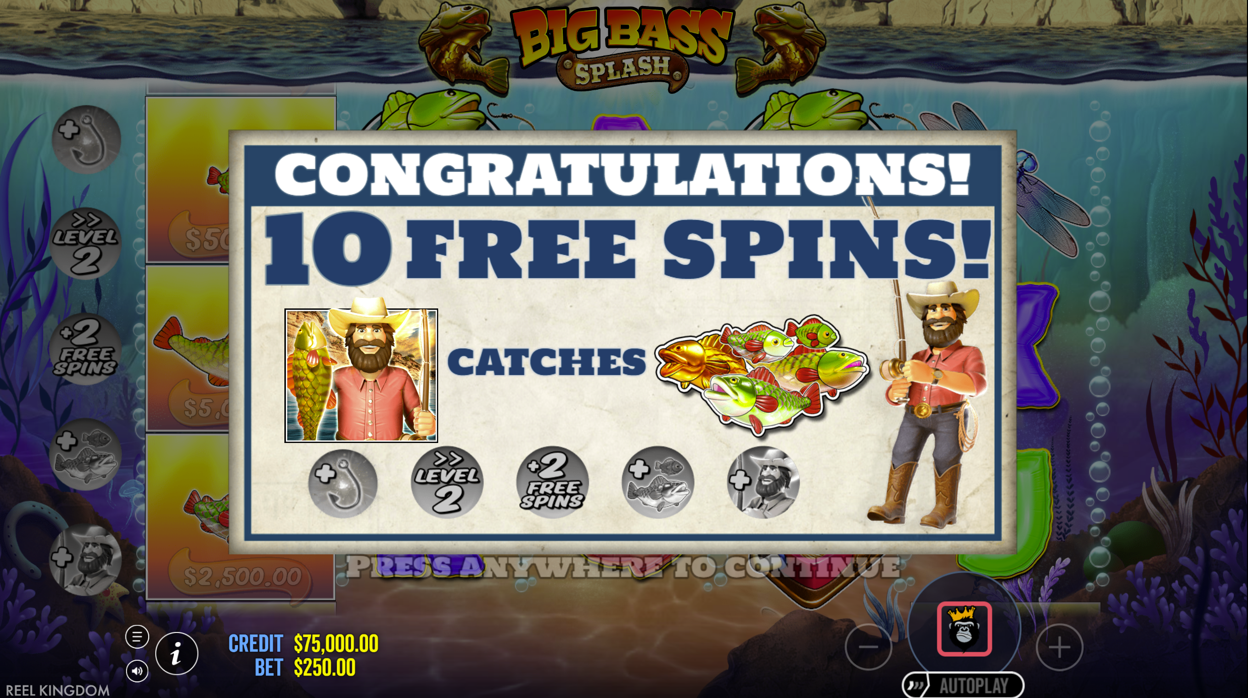 During free spins, fish-money symbols and fisherman wilds become key: wilds collect the values of fish symbols on screen, which then converts them into payouts. Added to that, random modifiers (extra wilds, extra fish, bazookas, dynamite, hooks) can appear at the start of the bonus, stacking up to create high-reward potential. :contentReference[oaicite:34]{index=34}